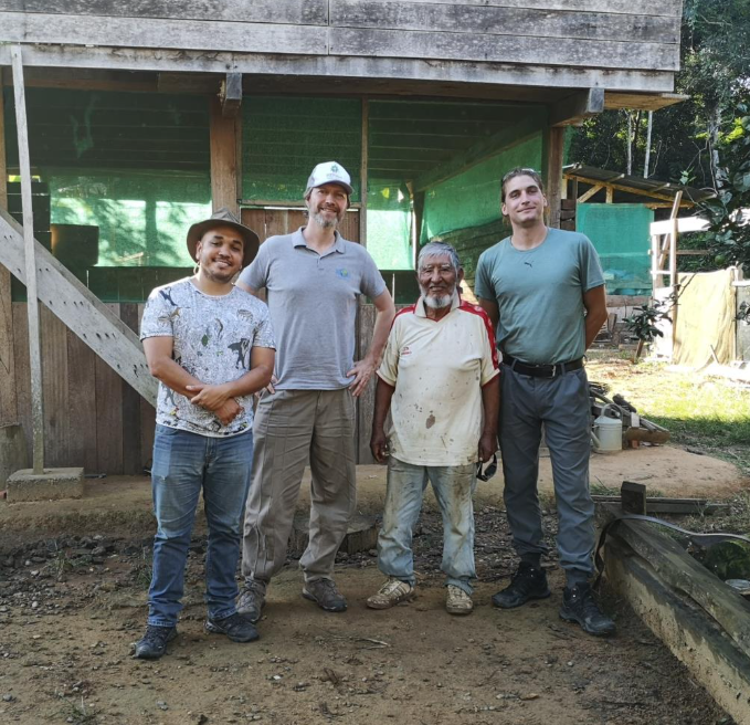 Photo (left to right): Hector Perez, Adrian Beling, Don Gabino Callata Ticona (retired teacher, agroecological farmer and our host in the village of CPM Mavila, Madre de Dios, Peru) and Nils Mojem.